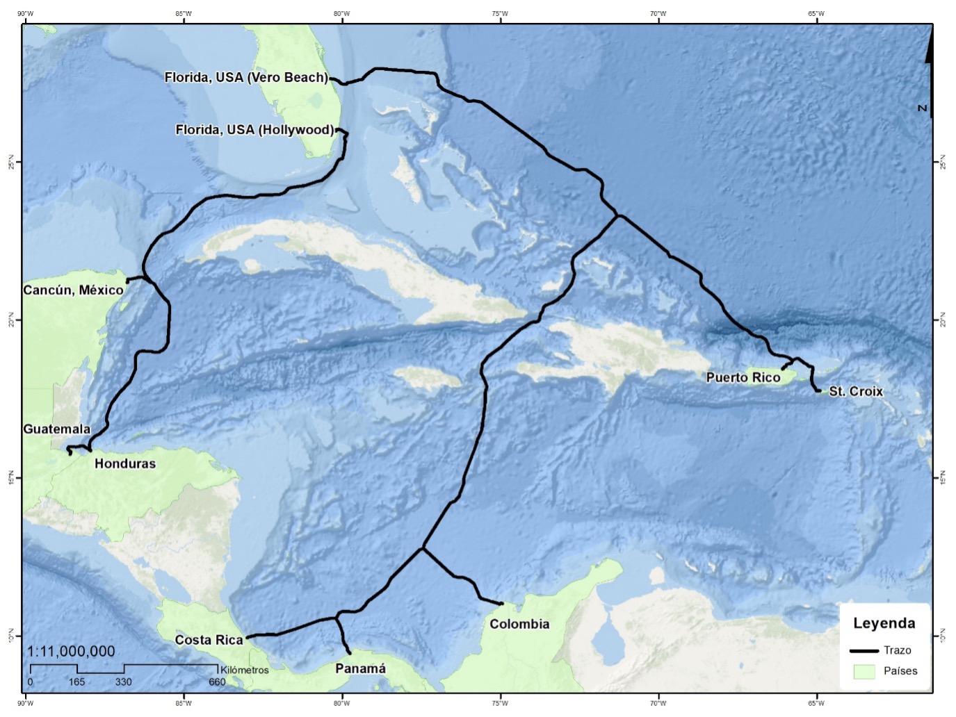 En México, la ruta que comprende el desarrollo del Proyecto, se ubica en la zona marina y costera del Caribe mexicano y tocará tierra en el Estado de Quintana Roo.